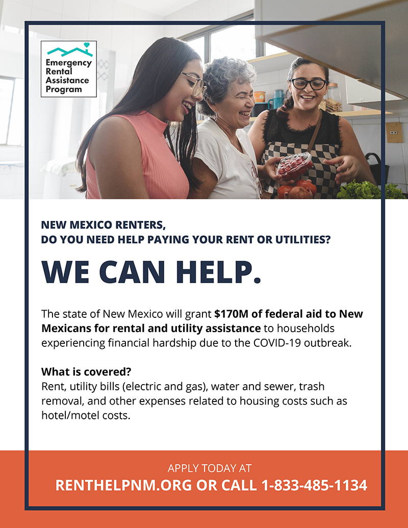 People can apply for the Emergency Rental Assistance Program using the links below. The Emergency Rental Assistance program is available to New Mexico renters who need help paying for rent and utilities. KNOWN RENTAL ASSISTANCE PROGRAMS IN NEW MEXICO as of 11202020 Albuquerque 311 Information Center.